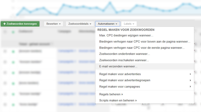 In principle, automated rules are simple "if-then" rules. They can be periodically performed from your Adwords account. You can go to the "Search words" tab page in your Adwords account to set these rules.