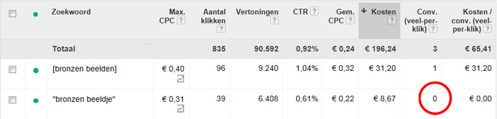 - The aim of this second email alert is that you are warned for not-converting, expensive search words. The reason why this second alert is necessary for this and why it does not belong to the first email alert is the "0 conversions pitfall" and the way in which Google appreciates the CPA of search words with zero conversions.