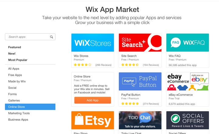 WixStore templates come with ready-made ecommerce functions but you’ll have to download apps for all other processes.