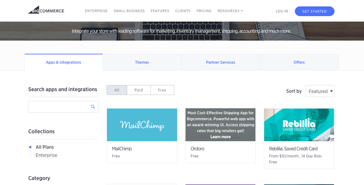 BigCommerce’s Apps & Integrations page showcase both free and paid extensions that cater to needs that may not be addressed by the platform’s built-in features. Whether it’s a plug-in for your store’s accounting process or for improving your email marketing, you might just find one that will best suit your store. However, when it comes to number of extensions being offered, BigCommerce lags behind the expansive number of extensions available in WooCommerce + WordPress platforms or the extensive app coverage in Shopify.