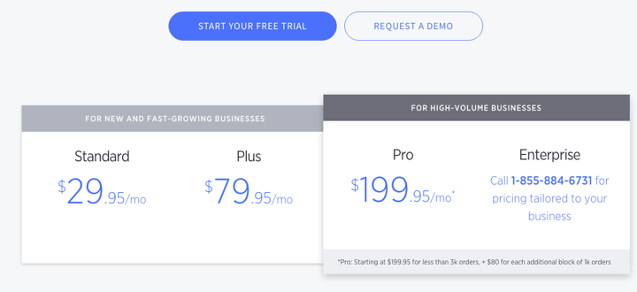 The plans are segregated on a per volume basis with the basic plans for new businesses starting at $29 per month while the high volume plans start at $199.95 per month.