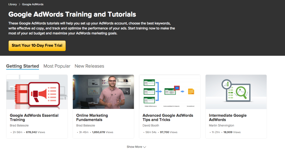 Sign up at LinkedIn’s Lynda to access Google Adwords Training and Tutorials ranging from the essentials to tips and tricks for advanced marketers.