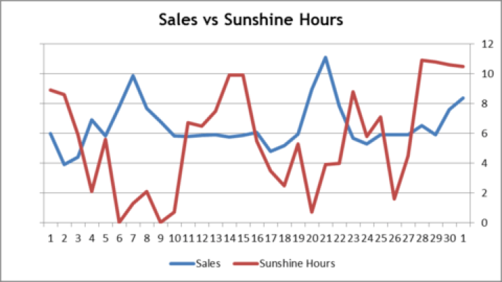 Weather Unlocked cites different examples of how the changes in weather translate to sales. Here’s an insightful graph showing the relationship of online sales and the number of sunshine hours: