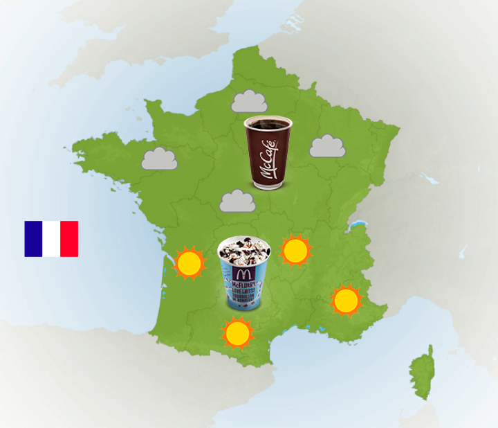 Here’s how McDonald’s does it: the company shows ads for coffee in locations with low temperature and ads for McFlurry in sunny areas. McDonald’s is clearly an expert in WBAs.