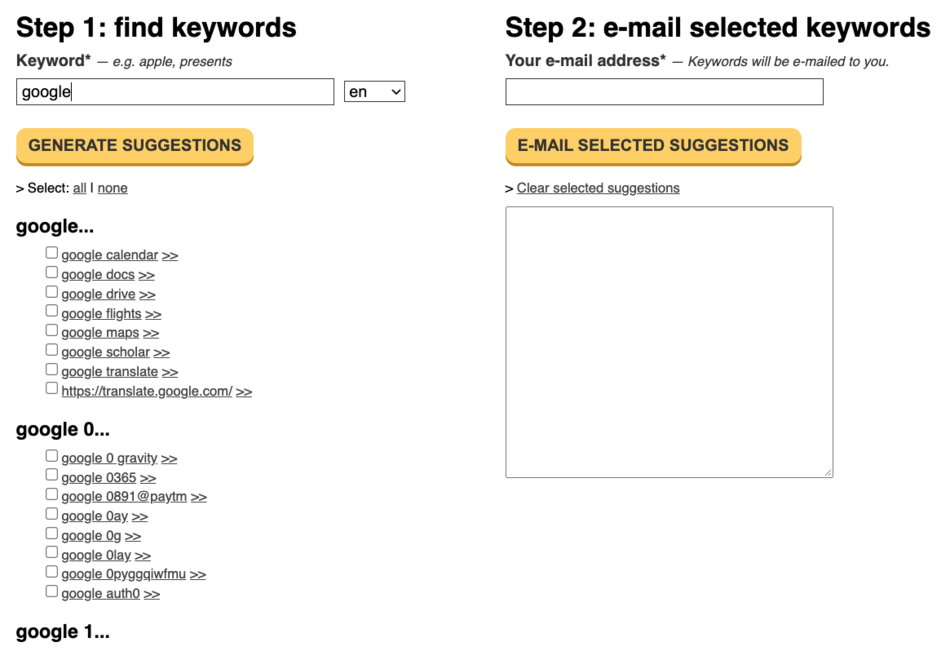 When a user starts typing a search query, Google displays a list of suggestions. These suggestions are of immense help to a marketer as he can optimize his content for the keywords people are already entering and looking up for.