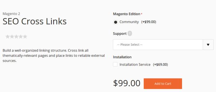 SEO Cross Links is an amazing extension, which allows you to add several keywords and URLs to the main pages of your site (such as blog pages, splash Pages, category pages and product pages). It helps users and search engines to find your pages easily and quickly. By doing so, you can increase the usability of your site up to a great extent. With this extension, you get free technical support and functionality updates.