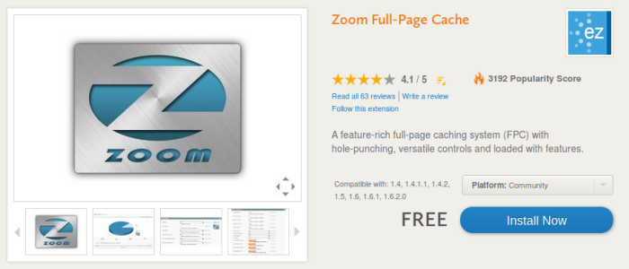 Zoom Full-Page Cache extension helps E-store owners to increase the website loading speed up to a great extent, decrease the load on the server and increase the conversion rate . This extension works on a simple pattern. When a user visits your site for the first time, it searches and delivers the page to the visitor and saves its cache. All such pages get accumulated in a cache. When the user visits the website again , the system uses cached information (rather than generating a request on the site's server) and presents the results quickly. This reduces database and server load up to a great extent and makes your site faster.