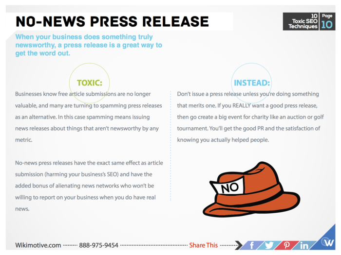 E-book summary: In this book you will learn the Do's and Don'ts of 10 proven SEO techniques. Get the facts straight about using exact match anchor text, exchanging links with your fellow bloggers, when to accept article submissions and the downfall of accepting bad submissions, when to write guest posts, the importance of focusing on search engines other than Google, when to use and when not to use a press release, the importance of social cues, and much more! Get the e-book