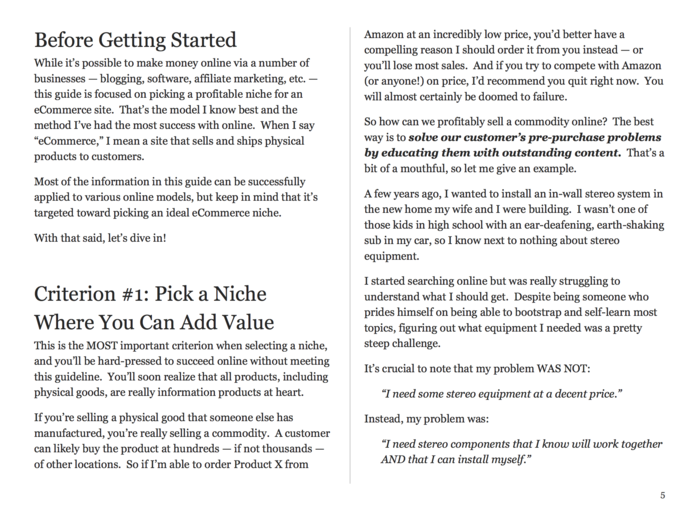 E-book summary: In this book you will learn the essentials needed to finding and creating a profitable niche site. You will start by learning the anatomy of a great niche, with several tips and tricks on how to do so, and move on to finding and evaluating your suppliers. You will learn how to measure market demand, and size up your competition to keep yourself from getting in over your head, and save yourself from expending effort on a non profitable venture. Get the e-book