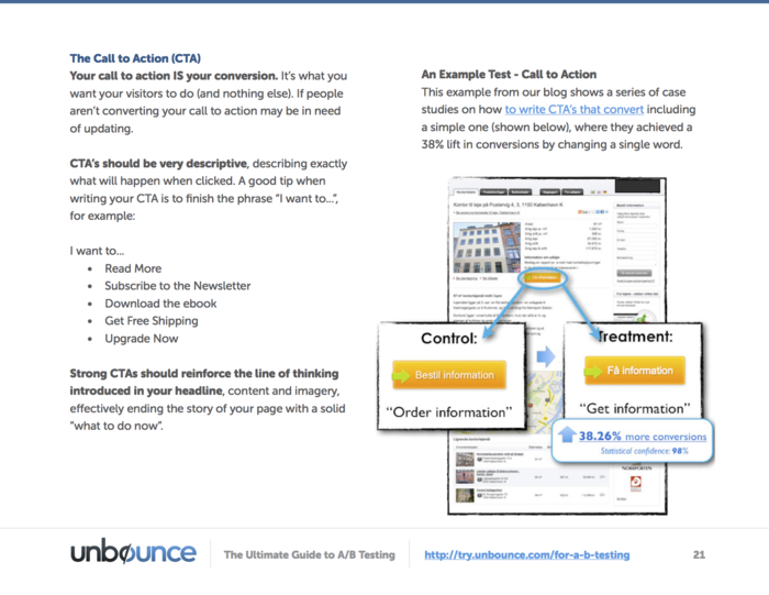 E-book summary: In this handy book you will learn everything there is to know about A/B testing. Start with a brief introduction to A/B testing, and get started with the 5 things all pages should have. Learn what page elements to test and the hypothesis behind them how to test those elements, how to manage your testing workflow, how to put all of that data you have collected to good use, and much more to get you the best results possible from your testing efforts. Get the e-book