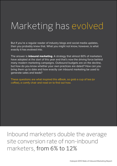 E-book summary: Follow the steps in this guide to optimize your inbound marketing strategy. You will begin by learning the types of content used for content marketing to generate leads, including blogging, ebooks, videos, and podcasts. Next you will talk about how to attract traffic to your web site, convert that traffic into leads, convert those leads into sales, turn those sales into repeat buyers, and finally, you will analyze the entire cycle so that you may continue to improve the process! Get the e-book
