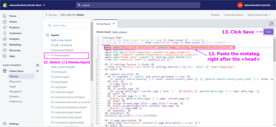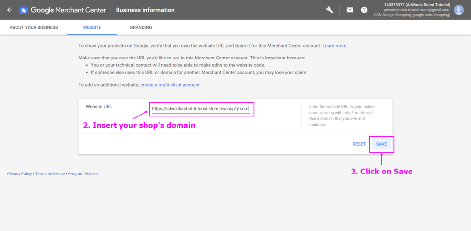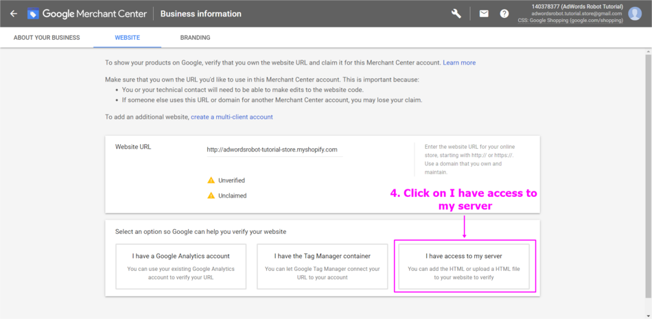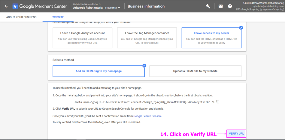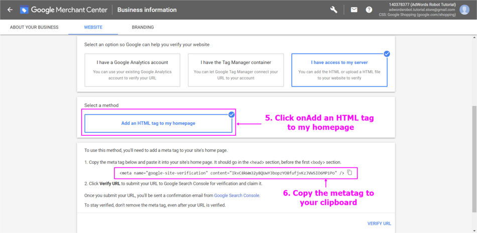 Claim and Verify the website URL