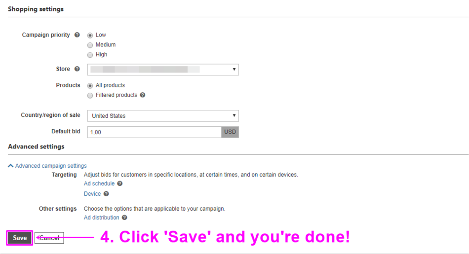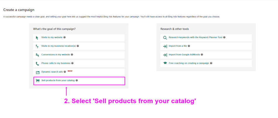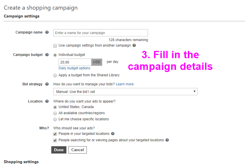 Follow the manual below to create a new Bing Shopping campaign.