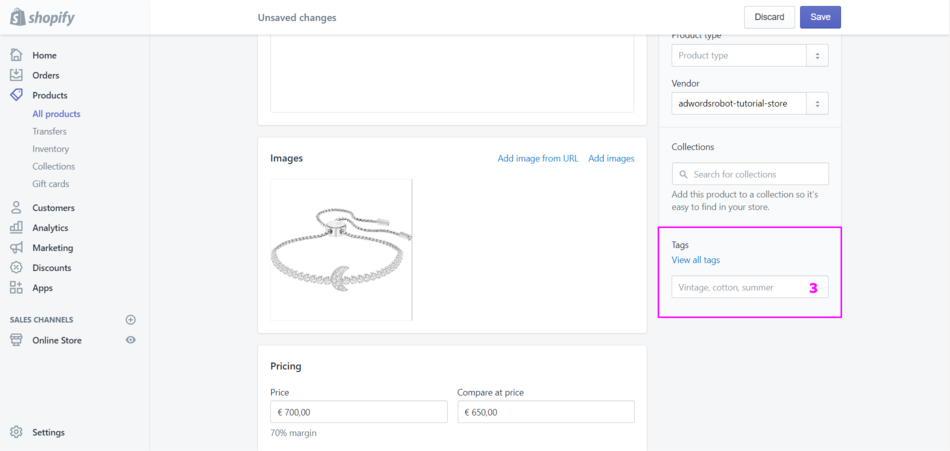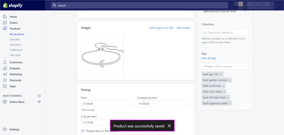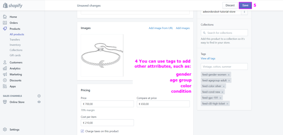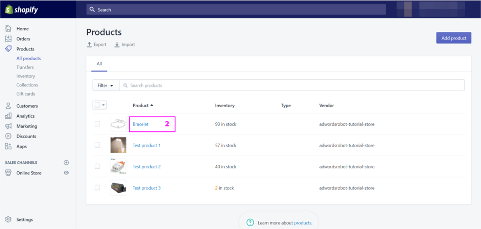 Go to your Shopify store. Now follow the manual below to add other labels to your product feed, such as: condition, color, gender, or age group.