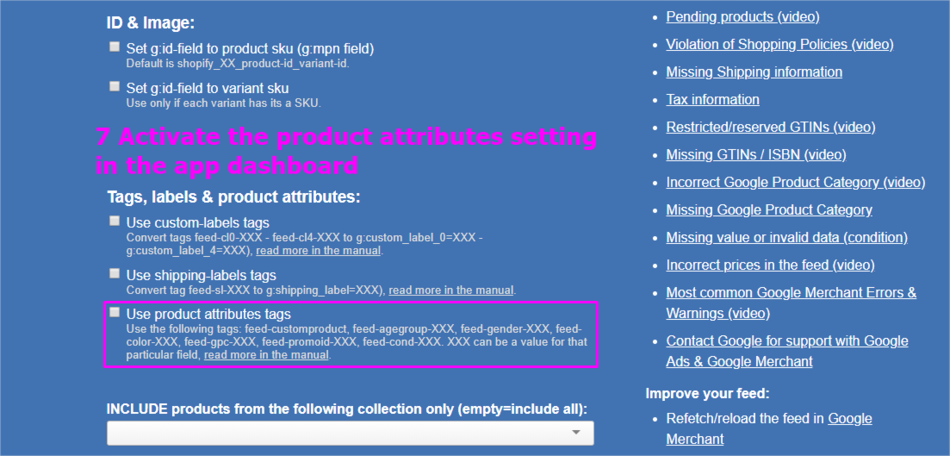 | Adult | feed-adult-yes | - | Use this function only if you have adult oriented products. |