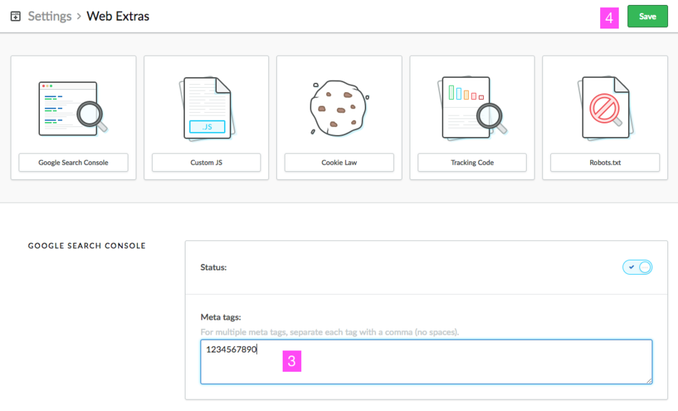 Click on Web Extras [2] in the third column (website settings).