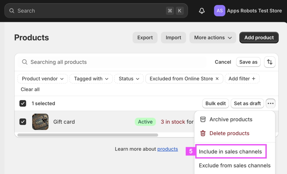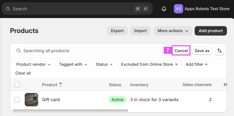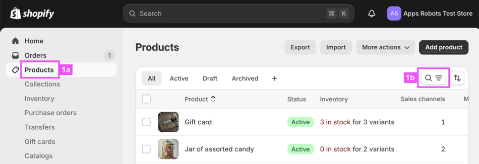 [1a] Go to Products and [1b] click on Filter-button on the right.