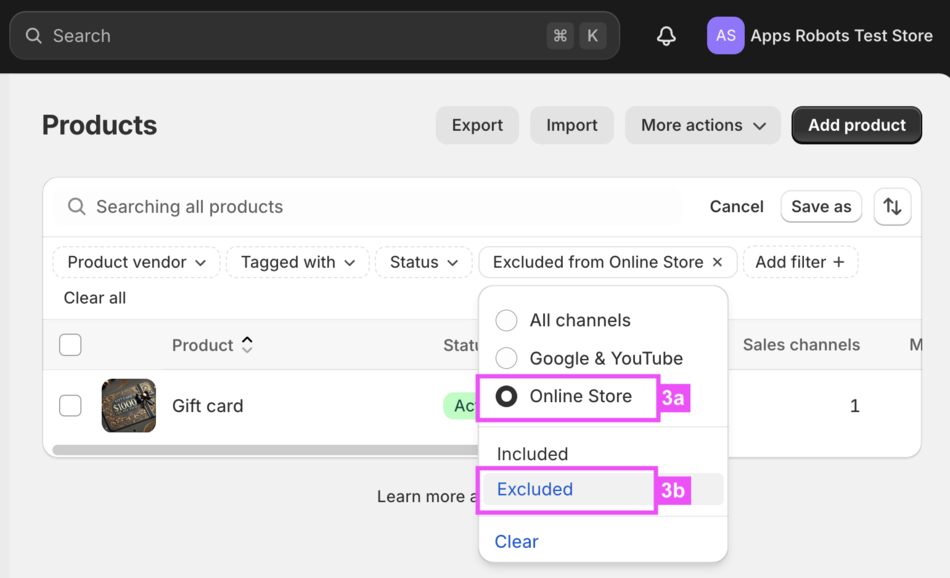 [2a] Click on Add new filter and [2b] select Sales channel.