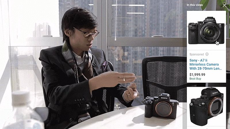 Below we see direct shopping results within a YouTube video about a Sony camera. If someone is interested in a product and searches for information about it on YouTube, you can directly approach this person through a Shopping advertisement.