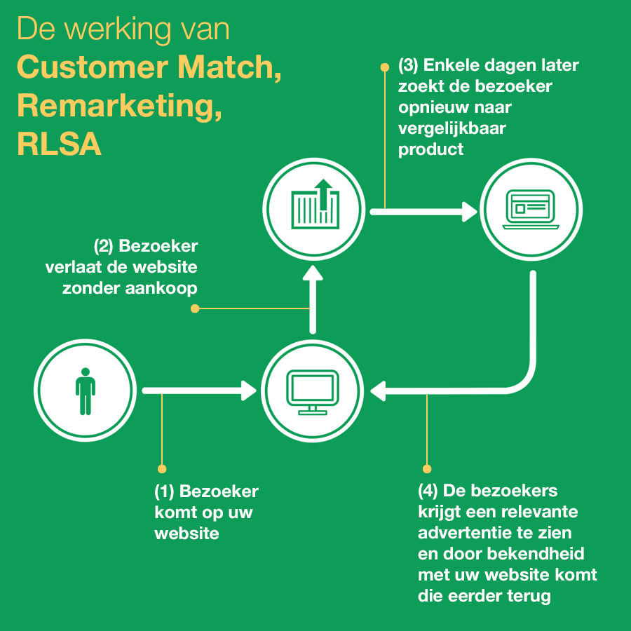 Met Customer Match is het mogelijk om bestaande klanten opnieuw te bereiken via zoekadvertenties op de Google zoekmachine. Dat gebeurt op basis van e-mail adres.