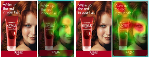 Eye-tracking studies onthullen dat wanneer een persoon in een plaatje naar een product kijkt, een persoon die naar het plaatje kijkt vaak ook naar het product kijkt.