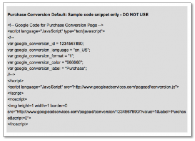 - De code staat onderaan het scherm. Er zijn geen systeem vereisten voor deze code om te worden geplaatst op uw site. De zoekers moeten in staat zijn om afbeeldingen te downloaden en cookies ingesteld hebben op hun computer zodat Google deze conversies goed kan traceren.