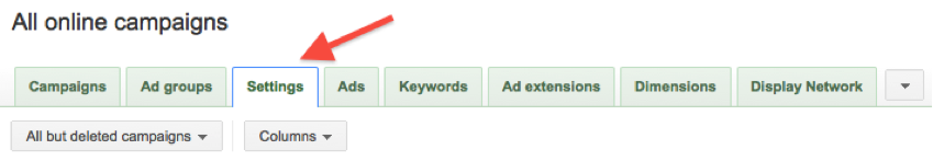 - Dit is normaal gesproken een van onze favoriete gebieden van een account om te herzien, omdat bepaalde instellingen de neiging hebben om, wanneer opgezet, nooit meer naar gekeken te worden. Het is erg goed als op dit gebied uw account het zoek en display verkeer target binnen een campagne, wat we eigenlijk vaker vinden dan u kunt raden. Vanuit hier kunt u ook apparaat targeting checken (is de mobiel uitgesplitst?), ad weergavemethode, ad rotatie (optimaliseren voor klikken wanner doelen zijn gebaseerd op conversies?), locatie/taal targeting, en ad planning.