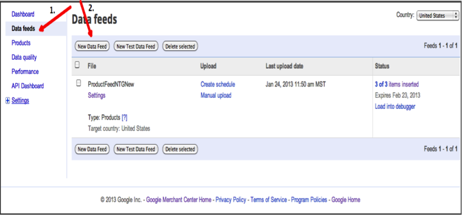 Wanneer u succesvol uw data feed heeft gemaakt is het tijd om uw Merchant Center account te uploaden. U hoeft slechts het volgende te doen: