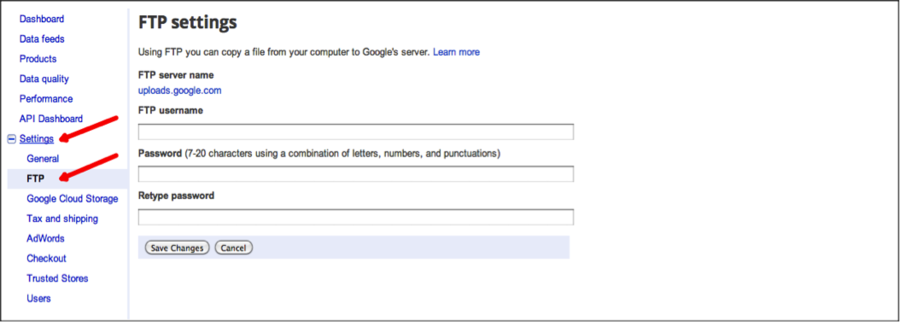 Ga naar Settings link in uw Merchant Center account, klik dan op FTP