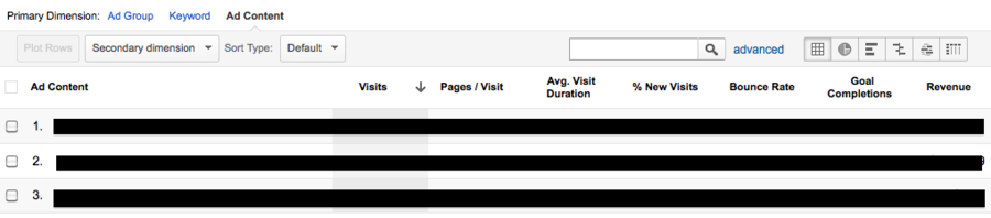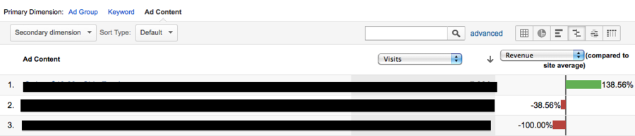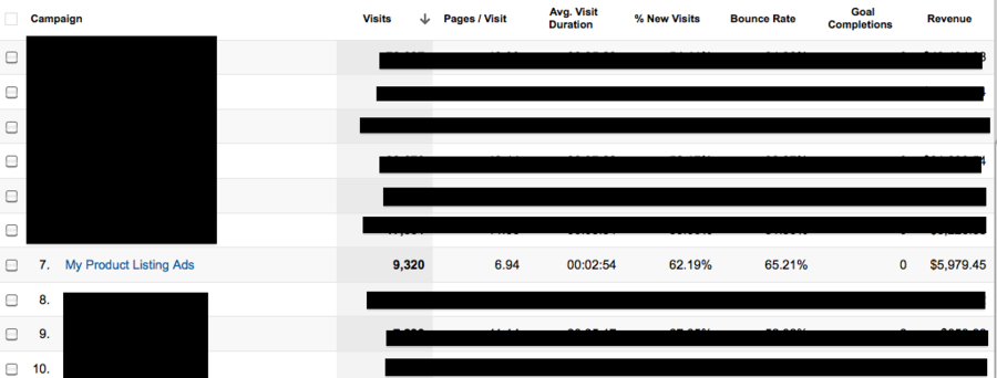 Ook al past men niet zo gauw ads met PLAs aan, men past wel de boodschap van speciale deals aan. U kunt meer inzichten in deze performance krijgen in GA. Dit rapport kan worden gevonden onder het reguliere campagne rapport in het AdWords traffic sources report. Daarna kunt u gewoon op uw PLA campagne klikken.