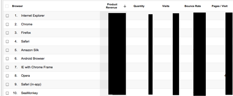 Hiervoor heb ik gewoon het aangepaste product report gekopieerd en het veranderd van product naar browser en een aantal extra meeteenheden toegevoegd.