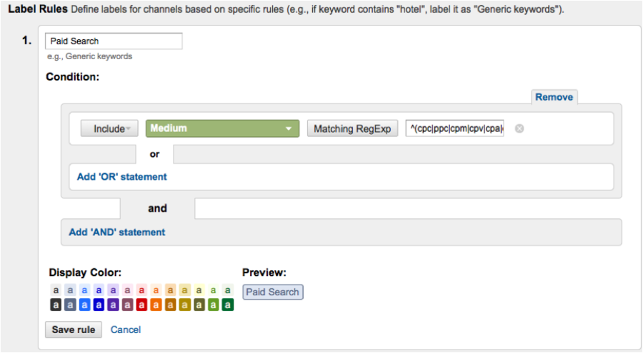 In de basis kanaal groepering is betaald adverteren gedefinieerd als alle bronnen van verkeer waarbij het medium matcht bij de reguliere expressies die hierboven staan. Ik raad u aan naar alle tags te kijken en te begrijpen hoe ze bepaald worden. Dit maakt het makkelijker om uw eigen aangepaste kanaal groeperingen te maken.