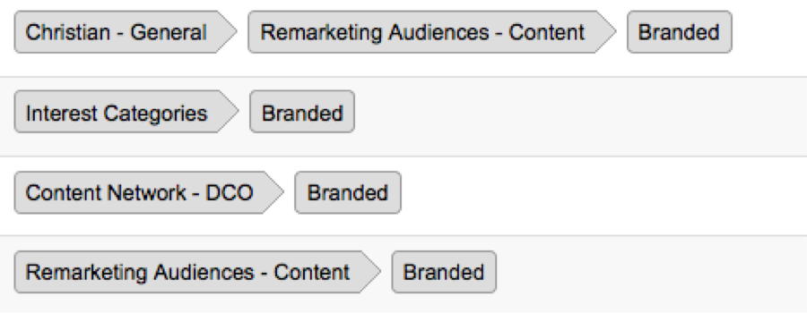 Ook al hebben mijn Display Netwerk campagnes typisch een vele hogere CPL dan branded, ze spelen een belangrijke rol in in het conversie proces. Dit is heel belangrijk omdat het voorkomt dat u campagnes pauzeert of beperkt die helpen de naamsbekendheid te verspreiden en die leiden naar conversies voor uw account.
