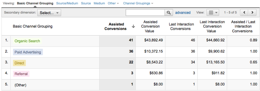 Waarom het belangrijk is: Het kan zijn dat u niet profiteert van alle voordelen van het runnen van PPC advertenties. Voorheen konden we in Analytics alleen conversies wijden aan PPC als PPC de laatste interactie was. Dit betekent dat PPC advertenties, die vaak de eerste interactie zijn die iemand met uw merk heeft, niet de volledige eer kregen voor het bijdragen aan conversies.