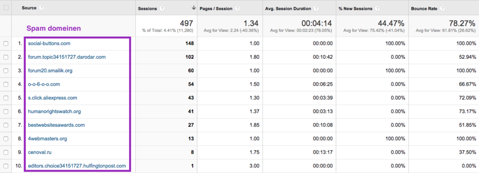 Welke domeinen in het verwijzingsverkeer zijn spam?