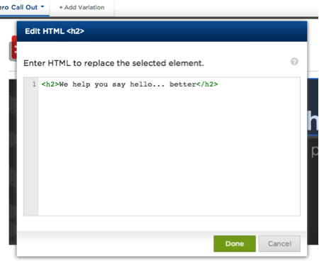 Met dank aan alle technologie is dit deel best makkelijk. Weet u nog dat u niet per se een top web designer hoeft te zijn? Met dank aan services als Optimizely en Visual Website Optimizer hoef ik mij daarover niet zo veel zorgen meer te maken. U kunt deze platformen gebruiken om snel een A/B test uit te voeren met simpele veranderingen aan uw site door het verdubbelen van pagina’s en het editen van de HTML of de stijl. Bekijk deze test die in 30 seconden is opgezet: