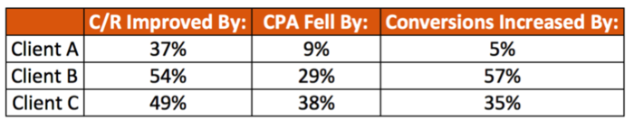Er zijn ook andere meespelende factoren die de CPA en Conversies beïnvloeden (zoals PPC werk dat wordt gedaan en de seizoenen) maar u kunt zien dat het verbeteren van uw conversie percentages heeft bijgedragen aan een betekenisvol effect voor onze PPC KPI’s. Klant C had het doel al bereikt, dus nu hebben we 38% meer ruimte om onze CPC’s toe te laten nemen en nog hoogwaardigere traffic te krijgen.
