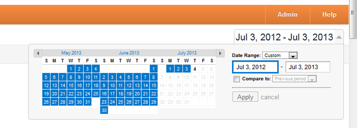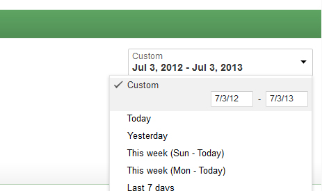 Open je Analytics account en geef de zojuist gebruikte tijdsperiode in, dus weer een jaar.