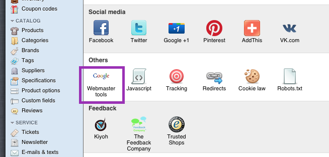 Door Google Webmaster Tools te koppelen aan je SEOshop winkel, krijg je meer controle over wat met je winkel gebeurt online. Denk aan sitemaps uploaden, Google Shopping koppelen, etc.